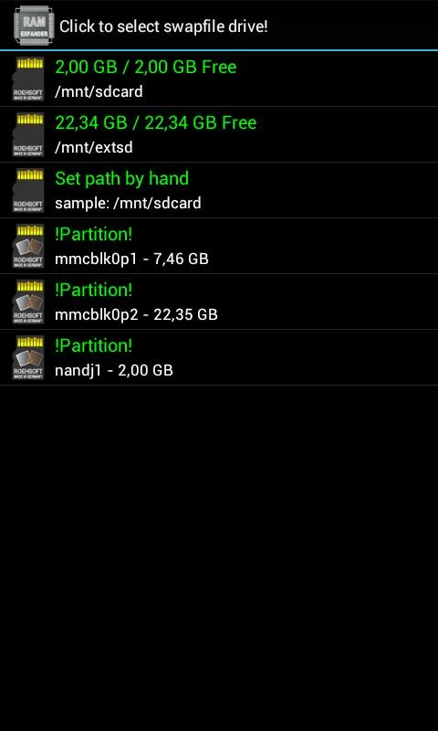 Finally, more memory with a click! Memory from Android 1.6 up with root access and external SD card! More memory means that background tasks will never more automaticaly terminated, and many programs will work correctly in the first place!